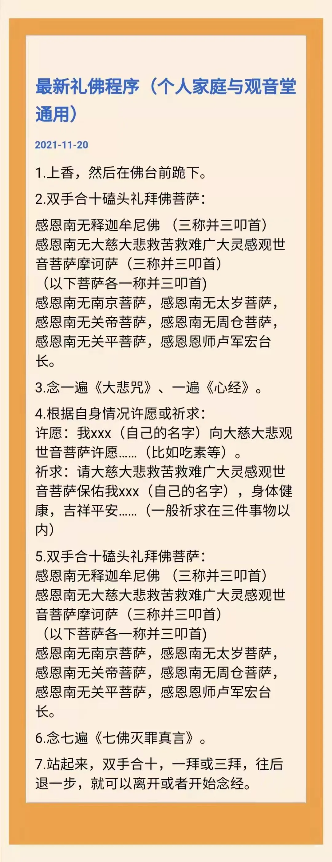 最新礼佛程序(个人家庭与觀音堂通用)